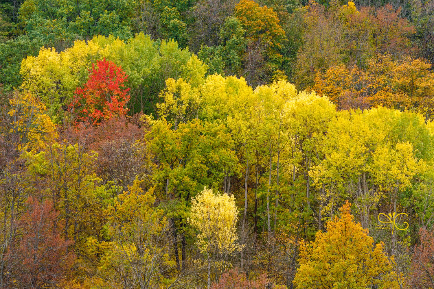 Яркие цвета осенней листвы в дубраве Стенок-Изгорий