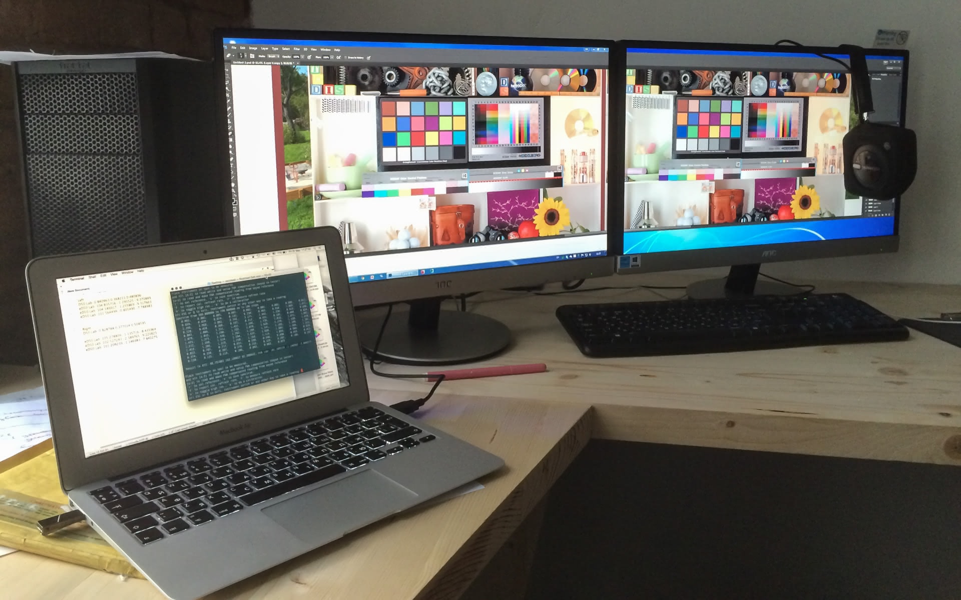 Профилирование двух мониторов спектрофотометром X-Rite Colormunki, контроль равномерности подсветки