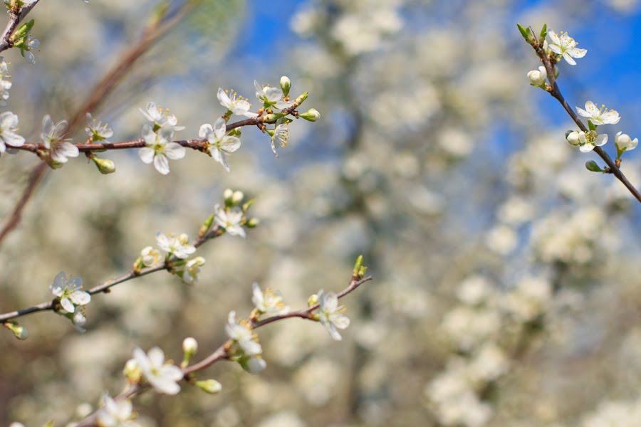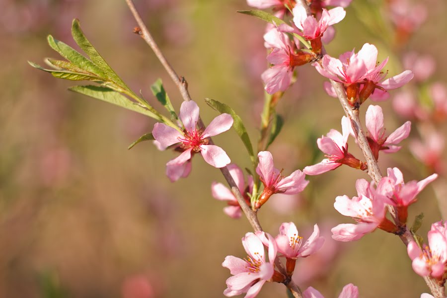 Первые цветущие растения, что нам встретились, были адонисы и примула, но они будут позже, потому что первое - это Оо! Это миндаль!