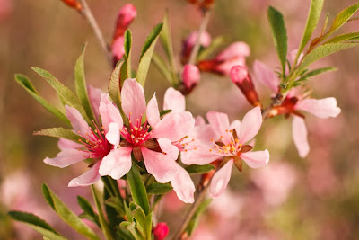 На самом деле миндаль представляет собой невысокие кусты, около 80 сантиметров - полутора метров, во период цветения густо облепленные яркими цветами. Миндаль можно посмотреть и в Петербурге, в ботаническом саду на аптекарском острове, где он цветёт примерно в начале июня.