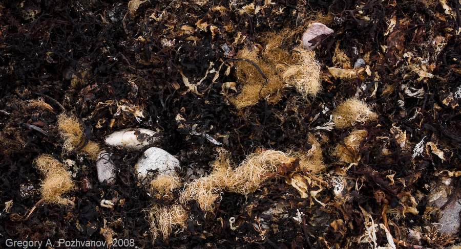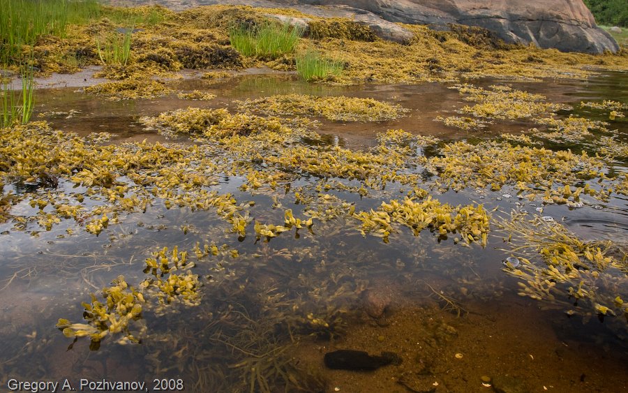 Берега Беломорских островов. Конечно, это всё камень. Гранит. И водоросли. Фукусы по берегу, аскофиллюм поглубже. И ещё немного гальки, совсем чуть-чуть.