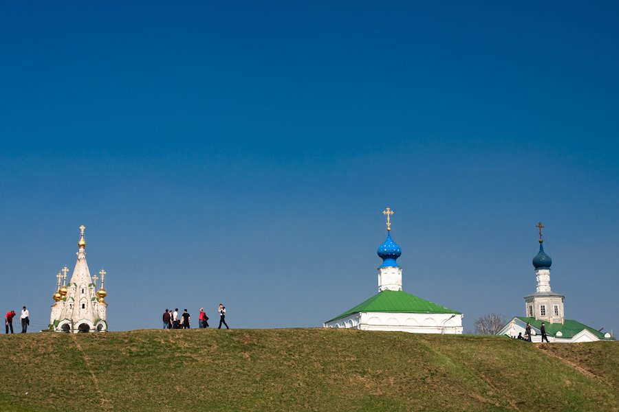 В целом же город произвёл на меня тягостное впечатление. Мало того, что мы застряли, впечатление усугублялось грязью, замусоренностью буквально каждого квадратного метра земли, стоит только отойти от магистральных улиц. Мне всегда интересно после осмотра достопримечательностей походить по задворкам: так что ли понятнее становится атмосфера города, впечатление полнее и ближе к точке зрения аборигенов, плюс всегда интересно снять памятники с оригинального ракурса. Вот с последним-то и было всё очень грустно. Кремль сам по себе и то чистый только с парадной стороны. Далее что-то отгорожено полосатой лентой, где-то ведётся реставрация, а за деревянным забором посреди второго двора ведутся раскопки, лишнюю воду откачивают насосом в Оку.