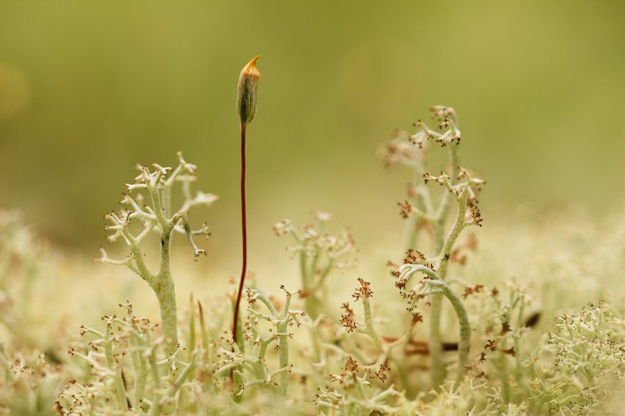 Сам сюжет фото не вижу смысла объяснять, все, кто фотографию видел, делятся на две группы: те, кто ничего в ней не находят, и те, кому очень нравится, они наделяют её глубоким смыслом 🙂 кстати, люди второй группы по стилю мышления мне очень близки. Ну да не это важно, а то, что вид доисторического макропейзажа ассоциируется и с биологическим содержанием фотографии. На ней действительно древнейшие растительные организмы - мох и лишайник.