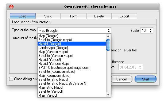 Теперь загрузите для выделенной области тайлы транспортной схемы, как описано выше, только не забудьте указать источник Hybrid (Google). Когда транспортный слой загружен, можно переходить к следующему пункту.