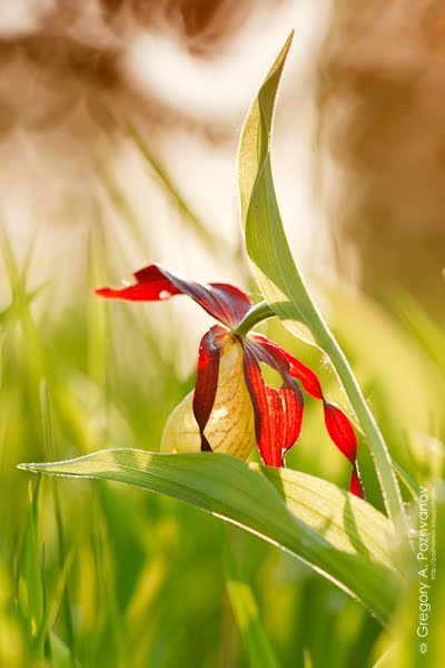 Венерин башмачок, Cypripedium calceolus, – красивая орхидея, до тридцати сантиметров высотой, цветёт одним или реже двумя жёлтыми цветками округлой формы. Мне они больше мешочек напоминают, а не башмачок (: