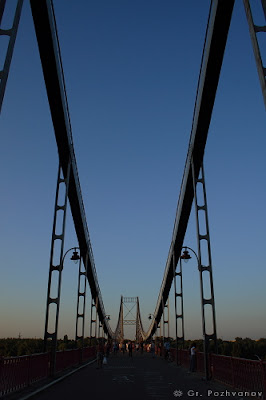 Киïв вечiрнiй (II). Пешеходный мост на Труханов остров.