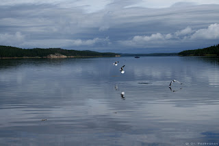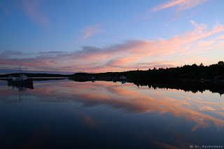 Два вечера мне везло на совершенно тихую и безветренную погоду. Отражения облаков идеальны, грести легко, лодка скользит по воде, как если бы была пустая.