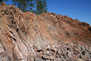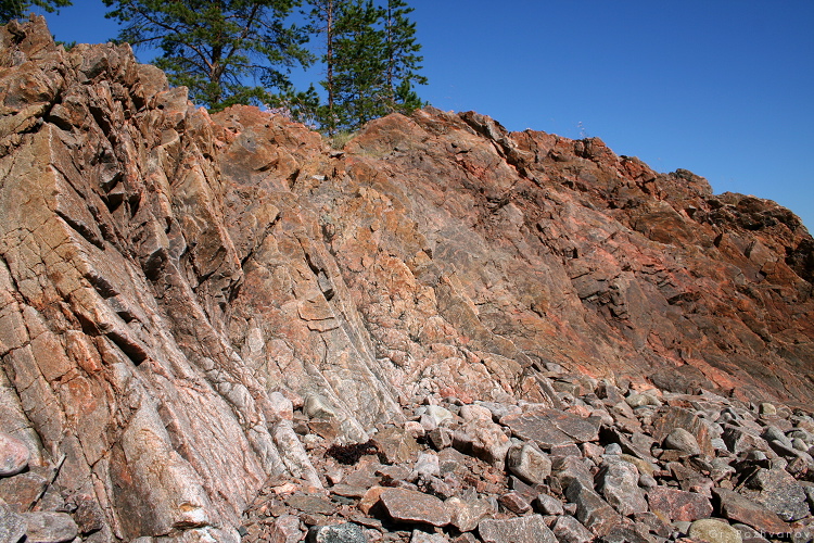 Воду здесь практически нельзя представить без камней, редко где грунт прямо подходит к воде. Самые удивительные скалы можно найти на лудах (луда - остров, не покрытый лесом). Казалось бы, всё сложено из одного и того же гранита, но цвета меняются от красно-бурого до голубоватого, фактуру поверхности вообще сложно описать. Камень подчас такой, будто человек проделывал прорези болгаркой - такие ровные и длинные трещины.