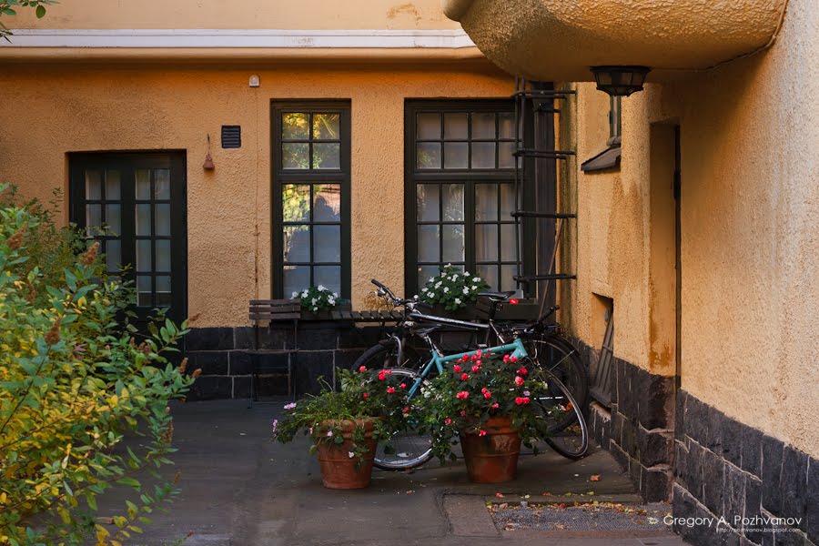 Интересная улочка в Эйре, узкая, с разнообразными домиками и двориками с садиками. Huvilakuja, Helsinki.
