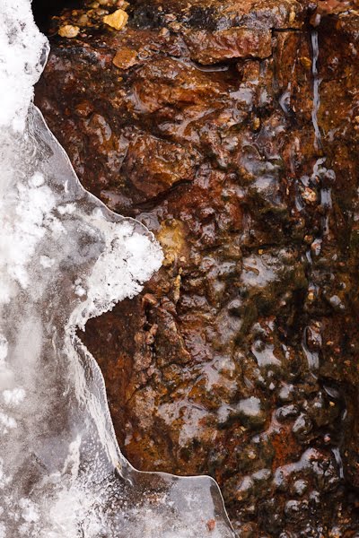 Sablinsky Waterfall was completely frozen this time, and water flowed only under the ice. So I've focused on some structures and icicles near the waterfall.