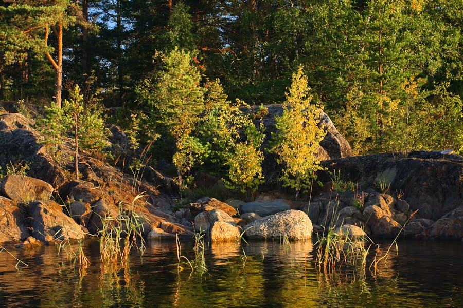 В прошлый визит в Карелию мы захотели обследовать новые места и двинулись на Куркиниеми. Красивые места. Залив "Кочерга" – узкий и глубокий, вдающийся в материк на пять километров. В него заходит на ночь большое количество судов, поэтому место слишком беспокойное, проходной двор.